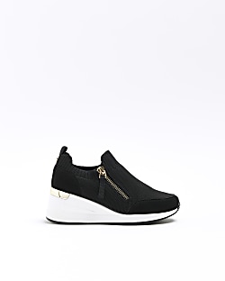 ALDO Black Gold Trim Suede Mesh Wedge Heel Trainers Shoes Size UK