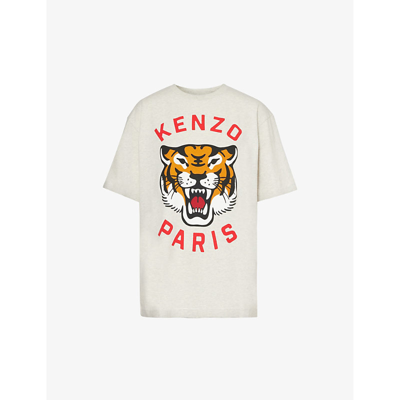 Kenzo Lucky Tiger Oversized Genderless T shirt Pale Grey Unisex