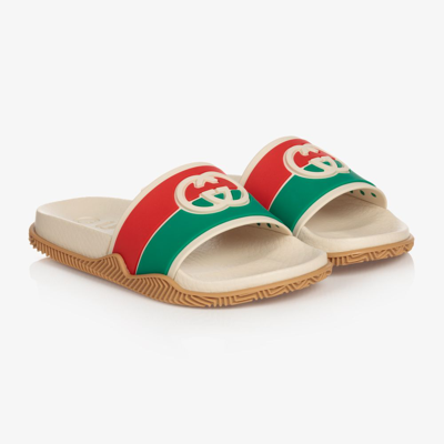 Gucci Kids Beige Interlocking G Slides In Ivory ModeSens