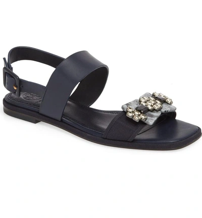 Tory Burch Delaney Embellished Double Strap Sandal In Perfect Navy