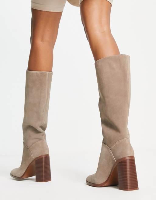 Mango Cream Beige Western Style Suede Leather Ankle Heeled Boots