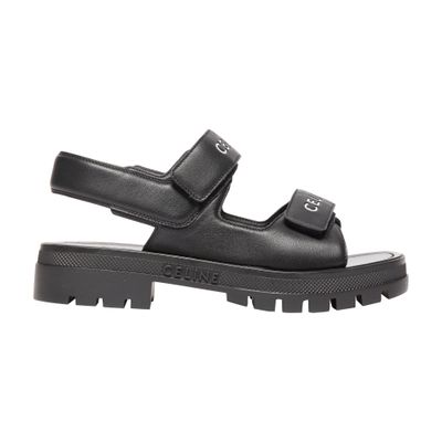 Celine Leo Scratch Sandal Shearling Fur Tan Leather Logo Strap