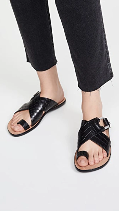 Rag Bone August Croc embossed Leather Slide Sandals In Black