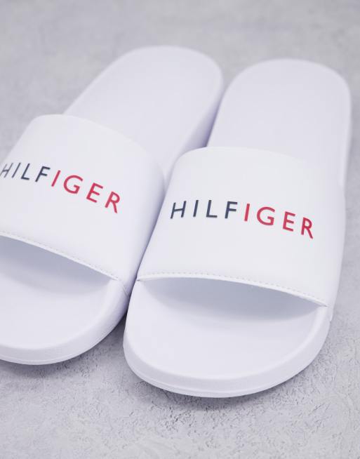 Tommy Hilfiger sliders with raised logo in white ASOS