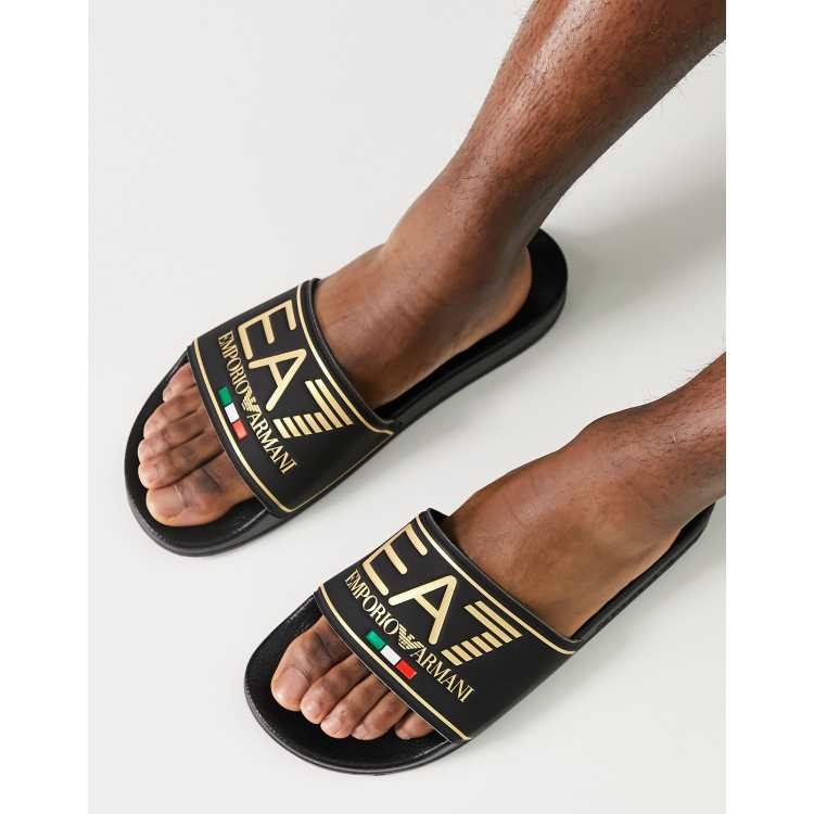 Armani EA7 contrast gold logo sliders in black ASOS