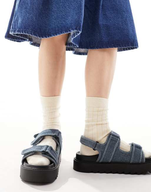 ASOS DESIGN Forecast sporty dad sandals in blue denim ASOS