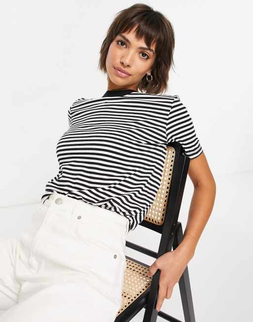 Selected Femme cotton perfect t shirt in black stripe ASOS