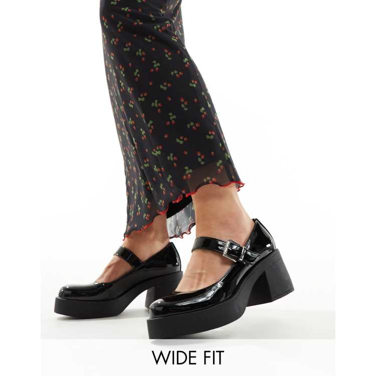ASOS DESIGN Wide Fit Sebastian chunky mary jane heeled shoes in