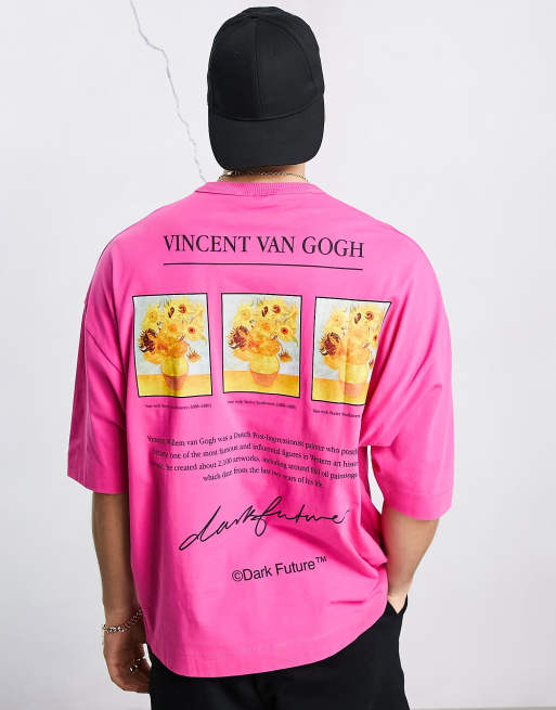 ASOS Dark Future x Vincent Van Gogh oversized T shirt with multiple graphic and logo prints in pink