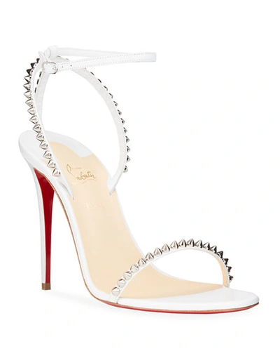 Christian Louboutin So Me Spike Red Sole Sandals In Bianco silver