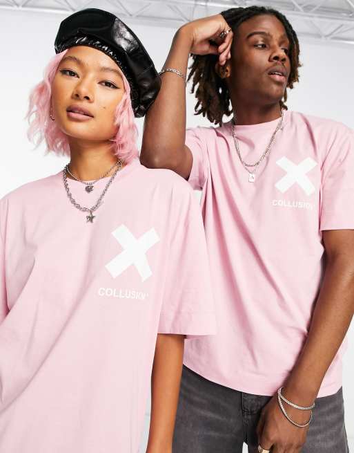 Collusion Unisex Size XL Dusty Pink Coton Short Sleeve Logo