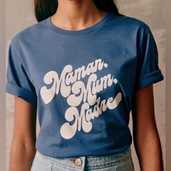 T shirt outlet evan sezane, Je t aime T Shirt Navy Ecru Organic cotton Sezane outlet