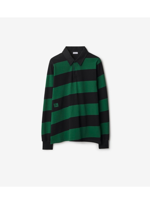 Burberry Long sleeve Striped Cotton Polo Shirt in Green for Men Lyst