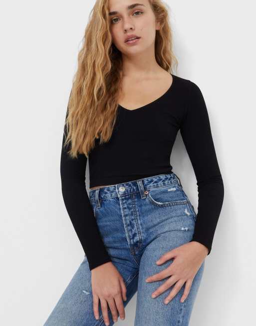 Haut noir outlet col v, Haut noir en dentelle col V Valentine outlet