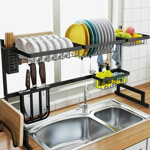 Dish rack with outlet cover carrefour, Buy Over The Sink Dish Drying Rack Black Shop Again Large Dish outlet