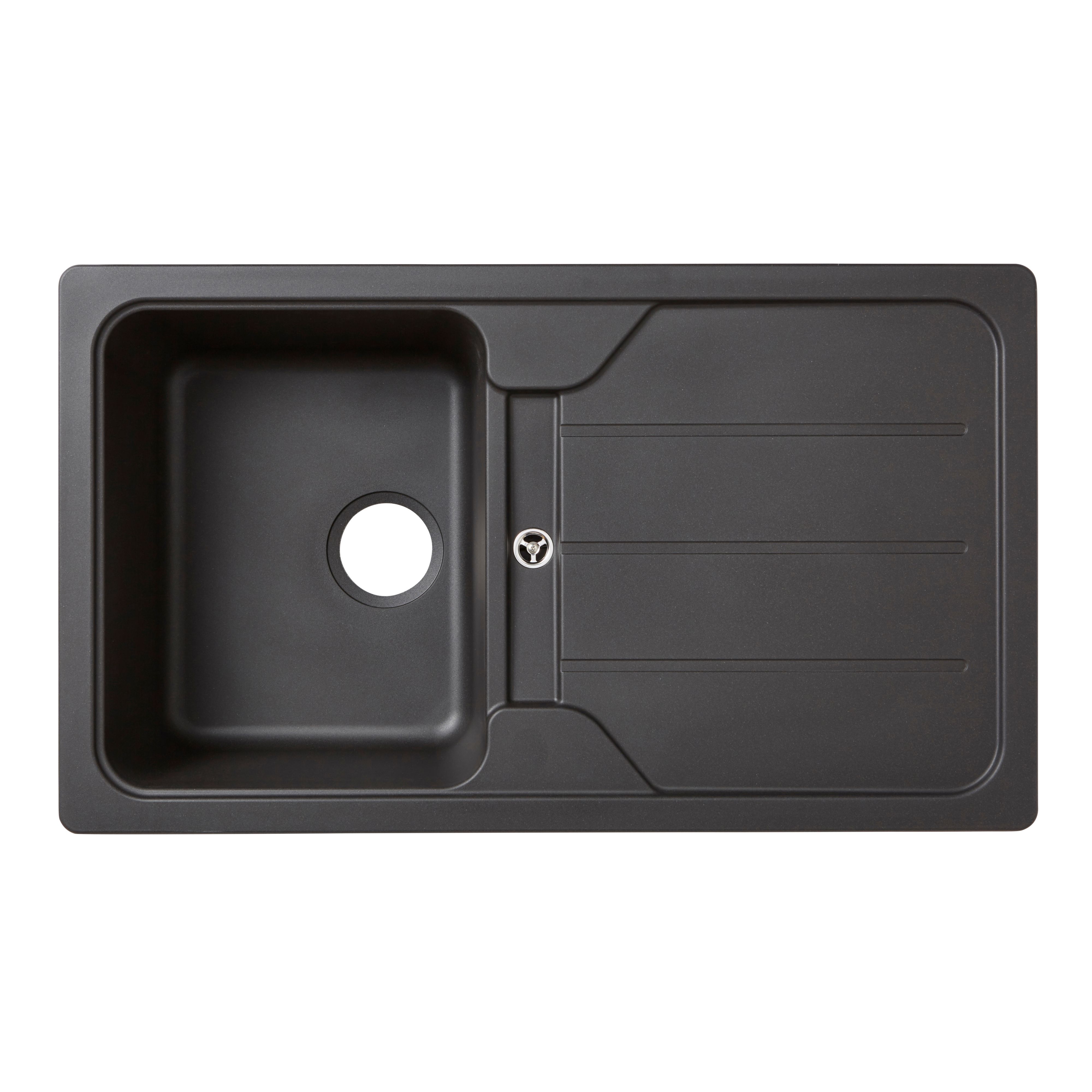 Cooke Lewis Arber Black Composite quartz 1 Bowl Sink drainer