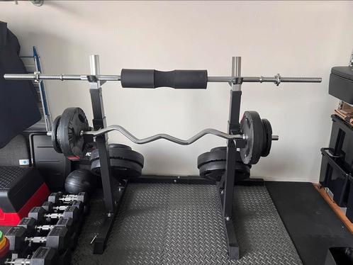 Squat Bankdruk Rack Barbell EZ Curl en gewichten 75 kg