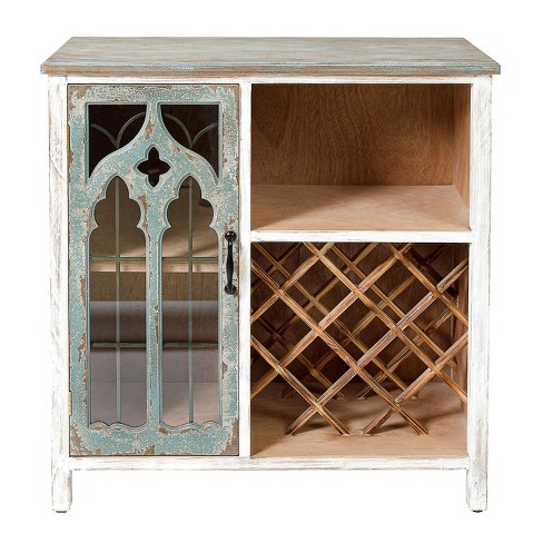 White wine outlet storage cabinet, Luxenhome Distressed White And Gray Wood 1 door Storage Wine outlet