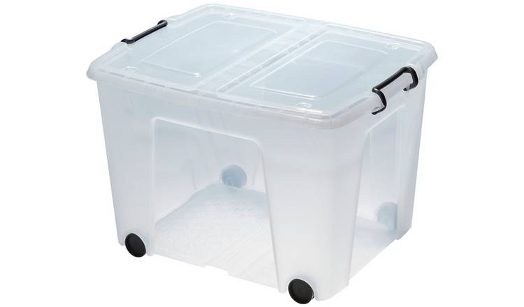 Plastic shoe outlet boxes argos, Buy Strata 75L Wheeled Smart Box With Lid Storage Box Clear outlet