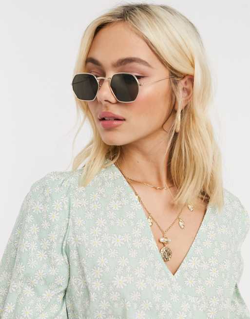 Pull Bear Lunettes de soleil hexagonales monture fine en m tal Dor