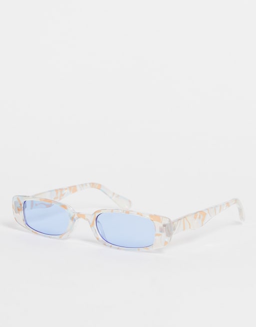 ASOS DESIGN Lunettes de soleil monture rectangulaire fine verres bleus Pastel marbr