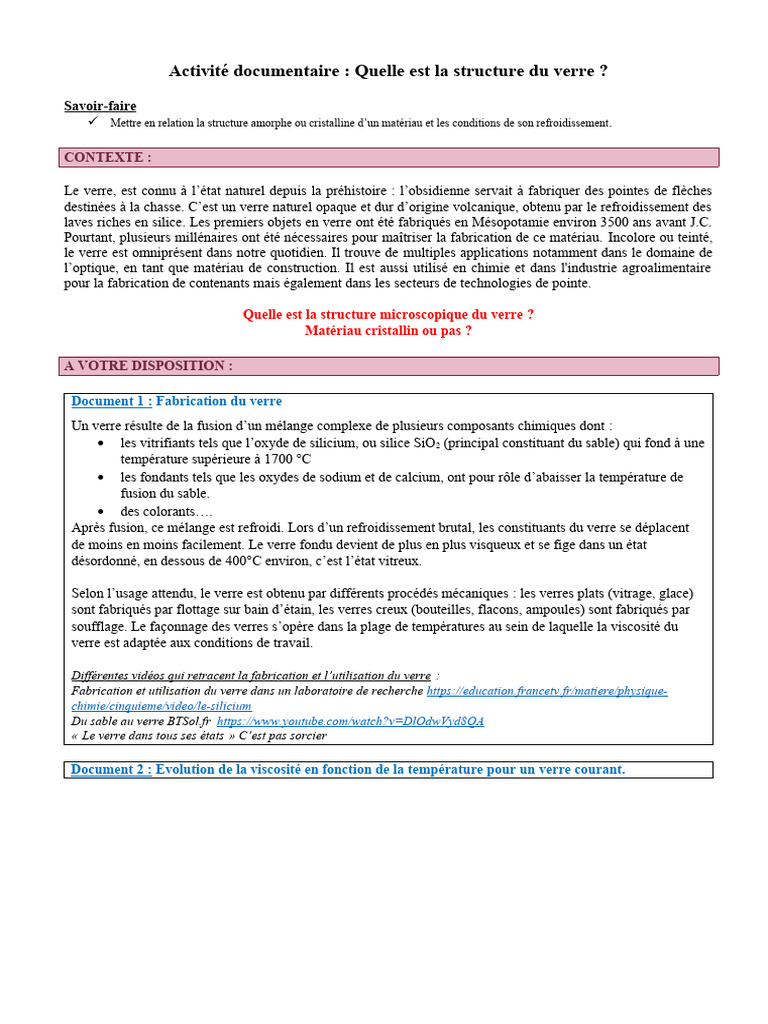 Activite Documentaire 3 Le Verre PDF Lunettes Dioxyde de