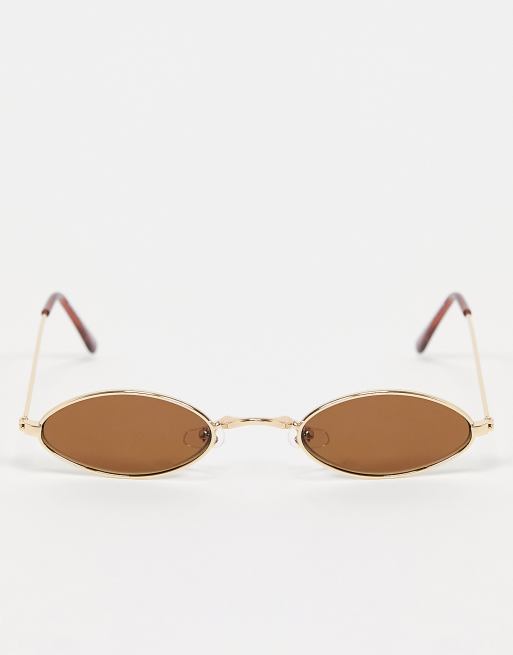 Bershka Lunettes de soleil ovales monture dor e Marron ASOS