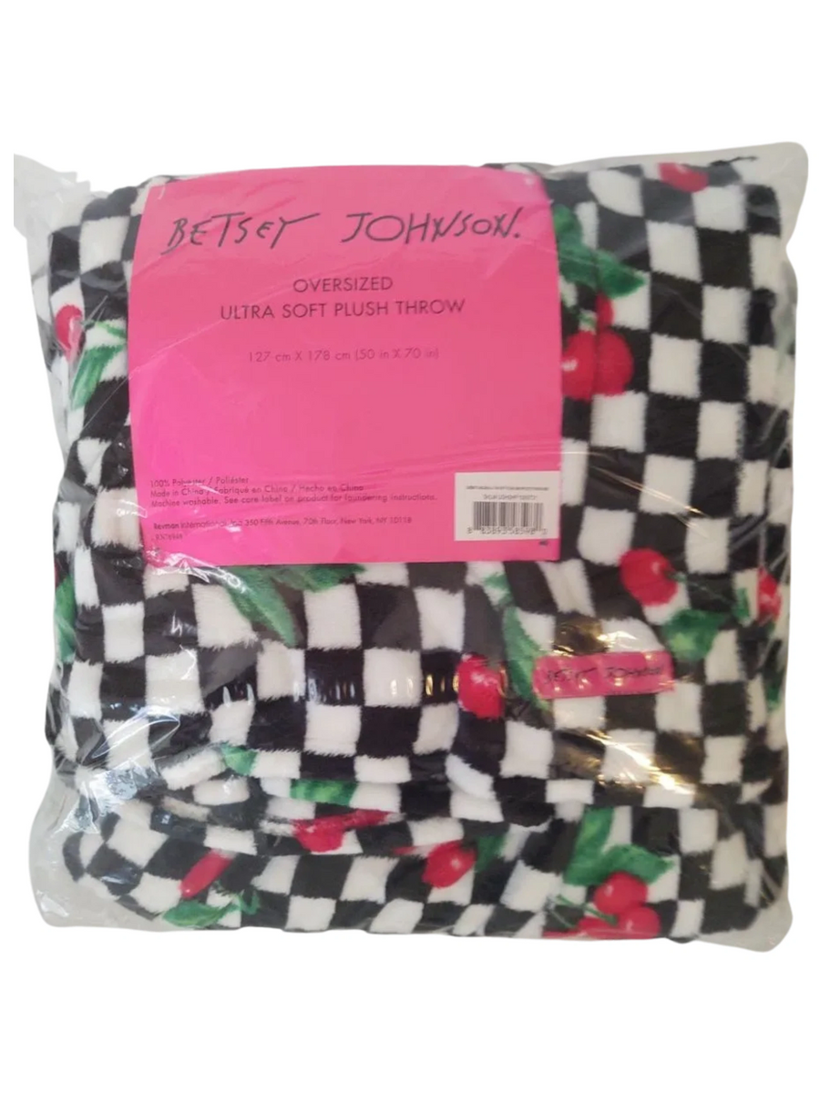 Betsey Johnson Oversized Ultra Soft Plush Throw Cherry Checker Jet