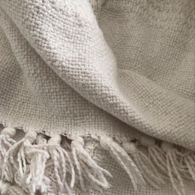 Fuzzy Ball Plush Knit Blanket Pillow Set Beige Best Stylish