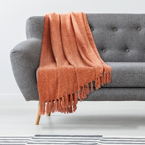 Americanflat Chenille Throw Blanket in Peach Breathable Polyester with Decorative Fringe Wrinkle and Fade Resistant 50