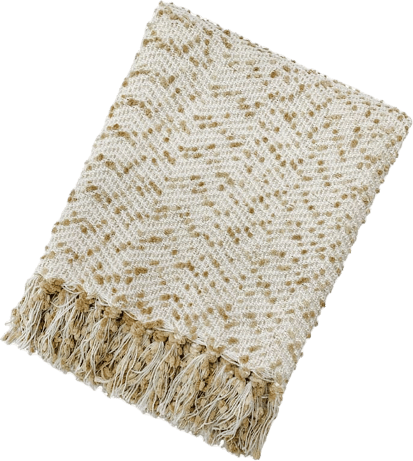Tan Acrylic Yarn Woven Throw Blanket 50x60