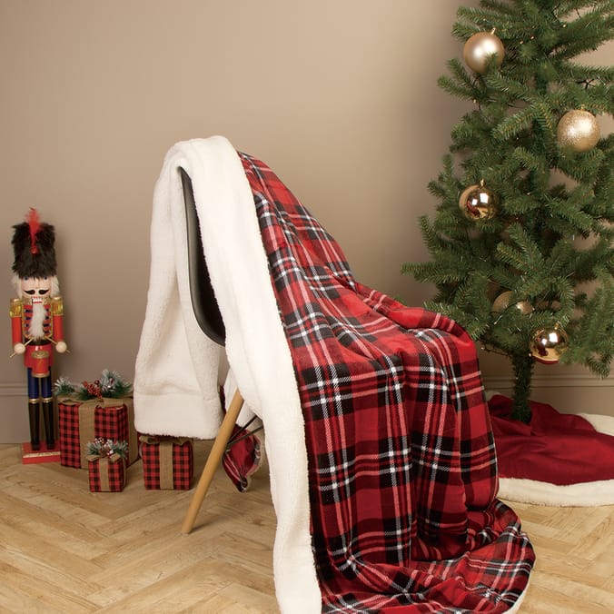 Noel Sherpa Throw Red Tartan blankets comfortable cosy