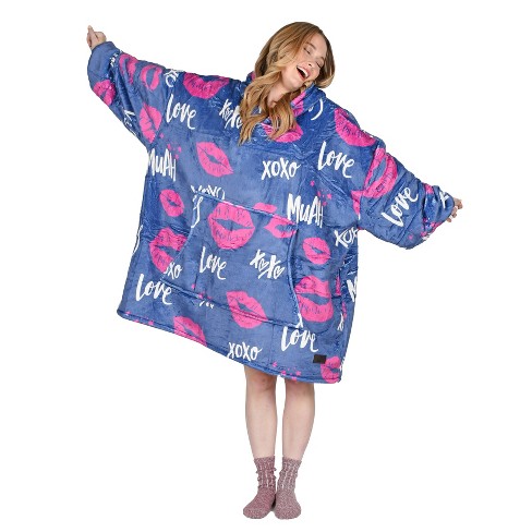 Catalonia Kiss Lips Print Oversized Hoodie Blanket Sweatshirt Wearable Fleece Giant Pullover for Adults Men Women Teenagers Wife Girlfriend Gift