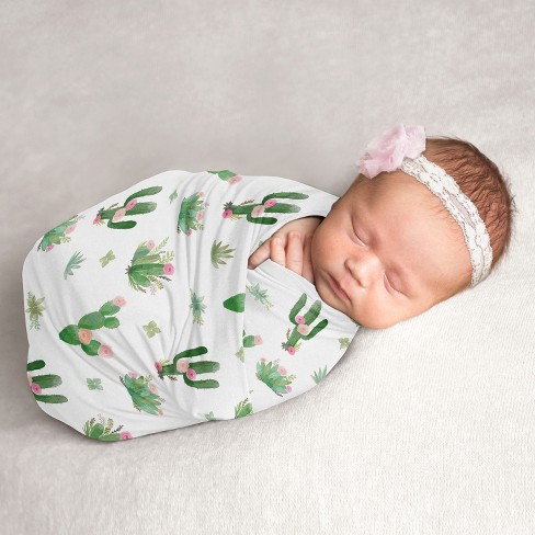Sweet Jojo Designs Girl Swaddle Baby Blanket Cactus Floral Pink Green and Grey