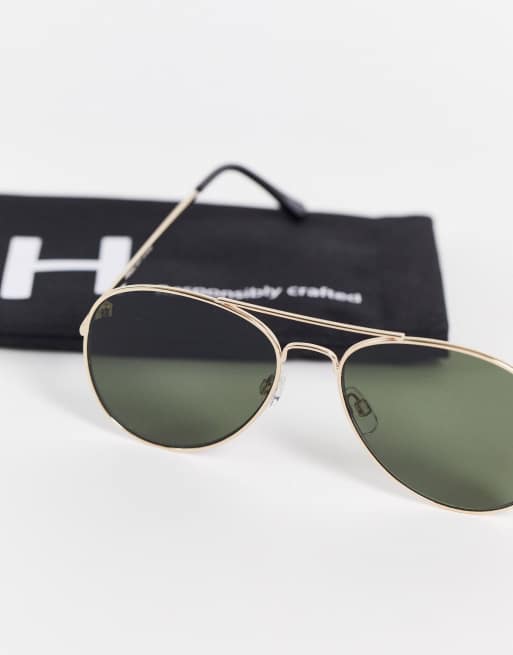 Selected Homme Lunettes de soleil aviateur Dor ASOS