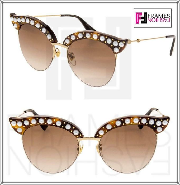GUCCI GG0212S 003 White Cat eye Semi Rimless Pearl Sunglasses