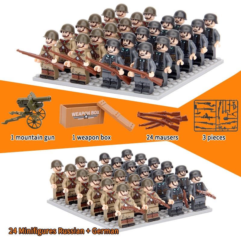TikTok Hot Style 24x WWII GERMAN v BRITISH Soldiers Weapons