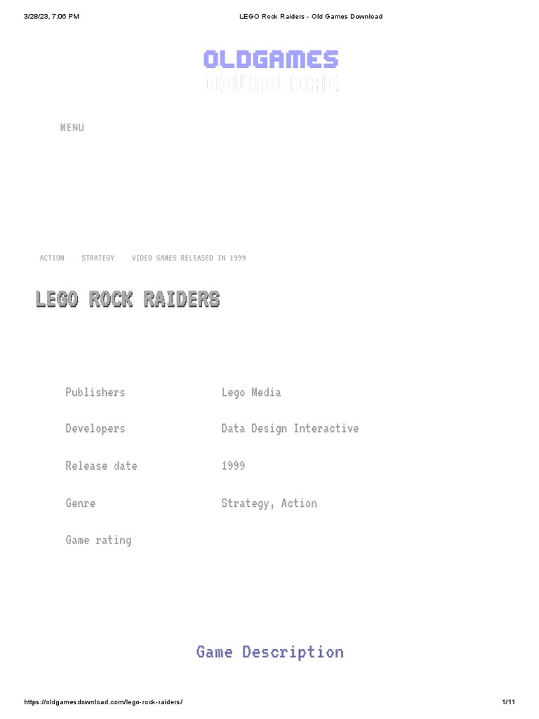 LEGO Rock Raiders Old Games Download PDF Microsoft Windows