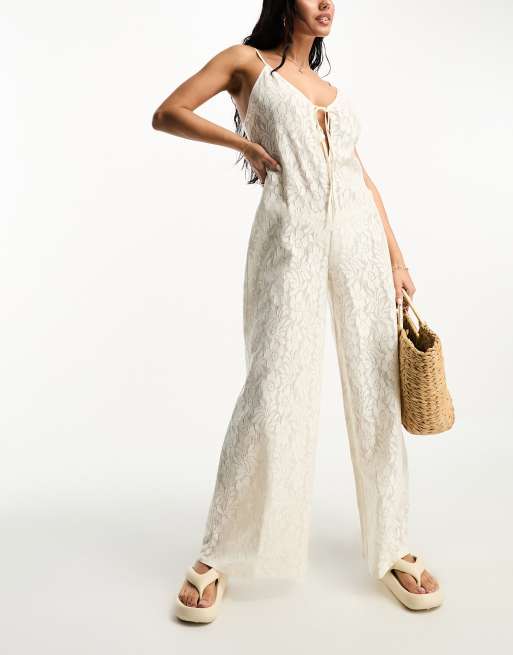 ASOS DESIGN Combinaison de plage en dentelle d coupe Cr me