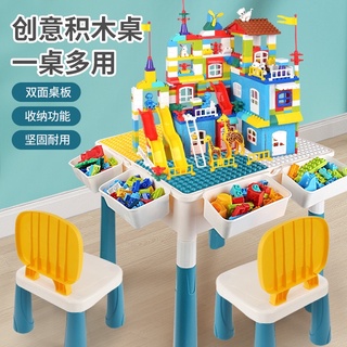 2 in 1 Kids Lego block and Study Table With Chairs Big Size