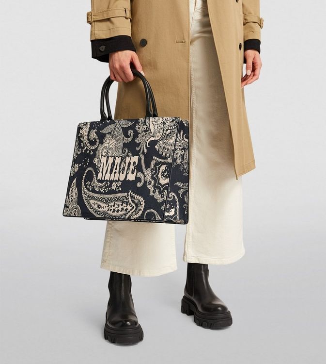 Maje Cabas Paisley Handtasche Shopper Stoff Blau Beige
