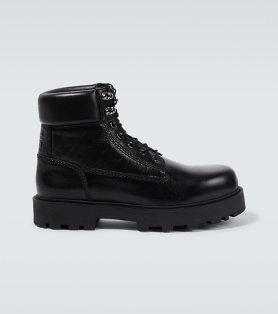 Givenchy Man Terra Ankle Boot In Black Leather With 4g Buckle In