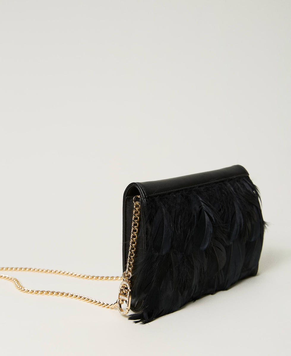 Pochette avec plumes et Oval T strass Femme Noir TWINSET Milano