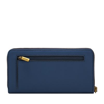 Pochette fossil outlet, NESH FOSSIL POCHETTE GREY LEATHER ZIPPER WALLET outlet