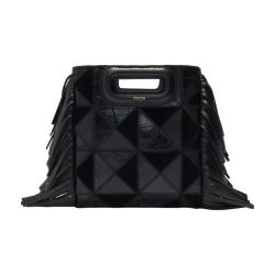 Sac Franges Maje Mini M en Paillette et Cuir Noir ref.1078872