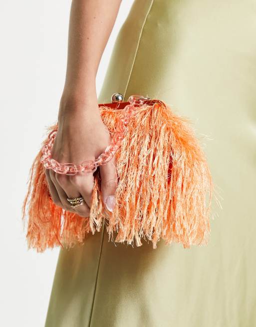 ASOS DESIGN Sac pochette en plumes synth tiques avec poign e en