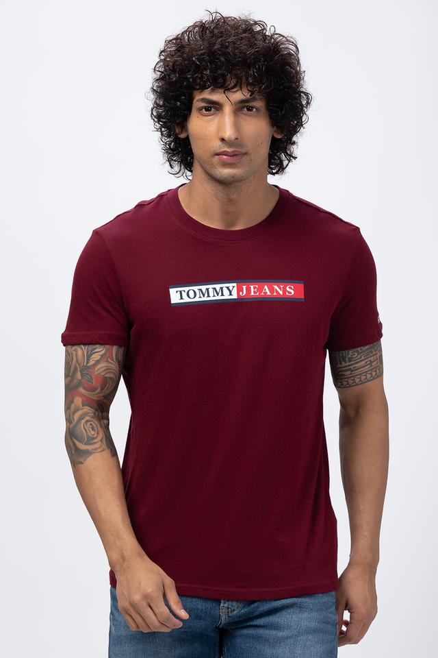 Buy TOMMY HILFIGER Red Printed Cotton Slim Fit Men s T Shirt