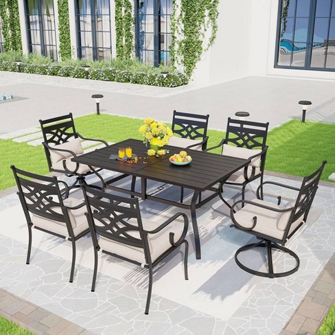 7pc Outdoor Dining Set With 2 Swivel Chairs Metal Table With