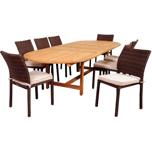 Noah 9pc Teak Wood Wicker Double extendable Oval Patio Dining Set
