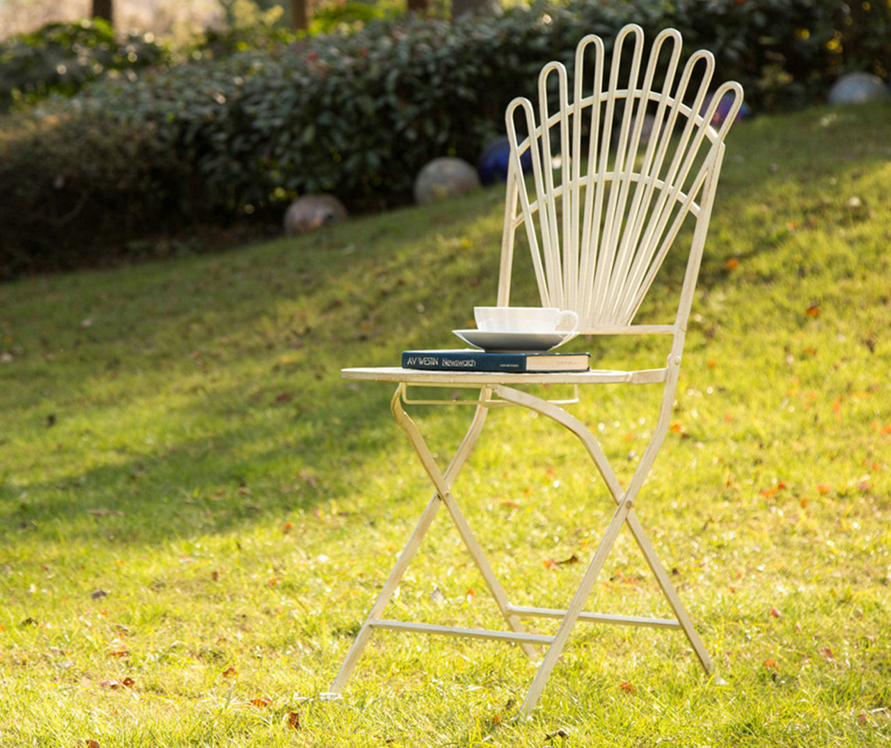 Glitzhome Antique White Metal Folding Patio Dining Chairs 2 Pack